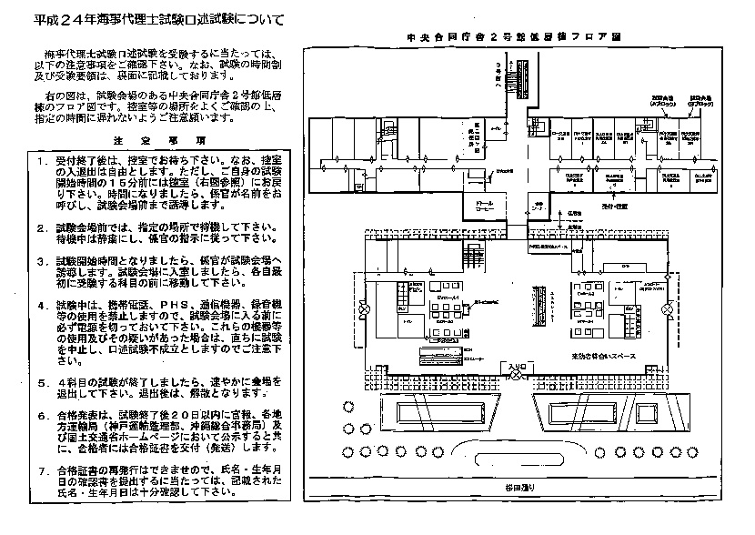 口述試験は全国の試験場で筆記試験を突破した方が国土交通省本省に集まり受けるのですが、私みたいな都内近郊の人は朝の早い時間か夜の遅い時間に割り当てられ、遠くから来る人は昼の時間に試験時間が割り当てられていました。私は霞ヶ関まで自転車で行ける所に住んでいるので、案の定一番夜遅い時間の試験でした。